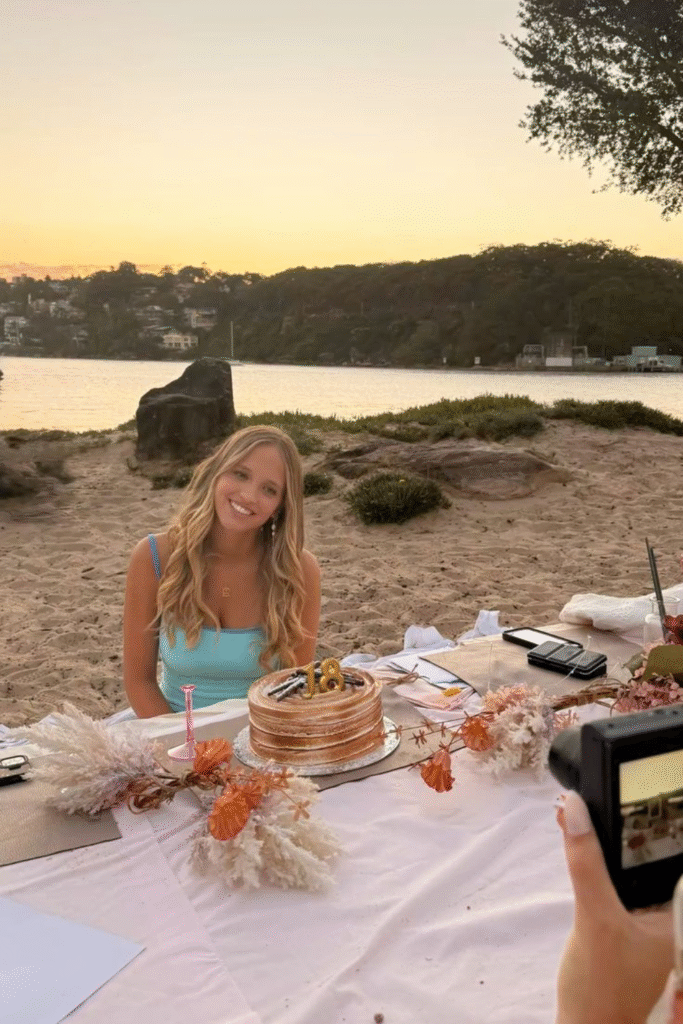 A birthday beach picnic is all about balance — practical pieces mixed with aesthetic details. Start with a waterproof picnic blanket placed where the sunset hits directly. This creates the ideal lighting for relaxed and natural photos.
